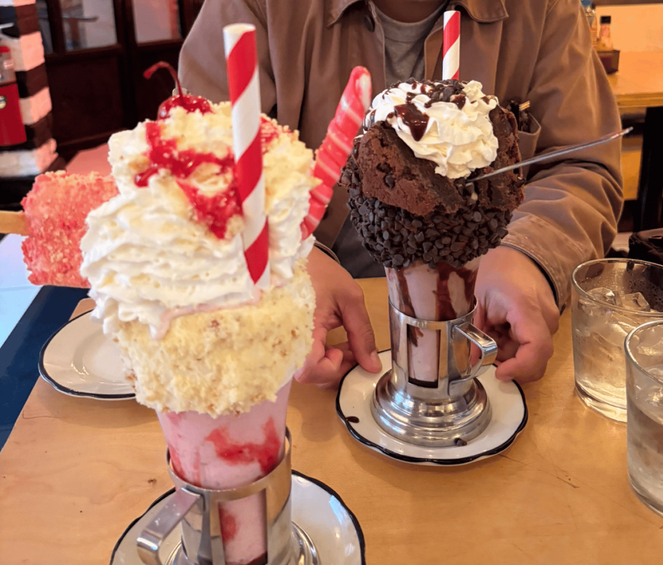 Let’s start with the grand ringmaster: Black Tap’s CrazyShake in SoHo. A milkshake hiding behind a cake hat with weeks-old frosting glued to the rim. There’s candy skewered through whipped cream. Underneath the sugar scaffolding is a thin, also overly sweet shake that tastes like generic soft serve melted into milk. Pass.