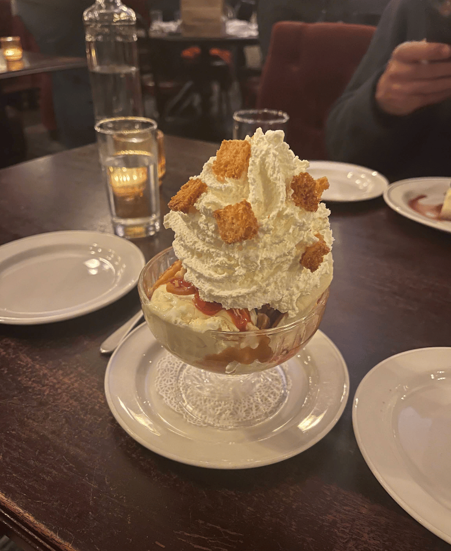 Even the spots that should know better get swept up. The Comeback Sundae at Gage & Tollner is polished and towering, a glossy monument to excess. Yet, it’s forgettable. The layers blur into sweet on sweet on sweet. The chandeliers are far more memorable than the food.