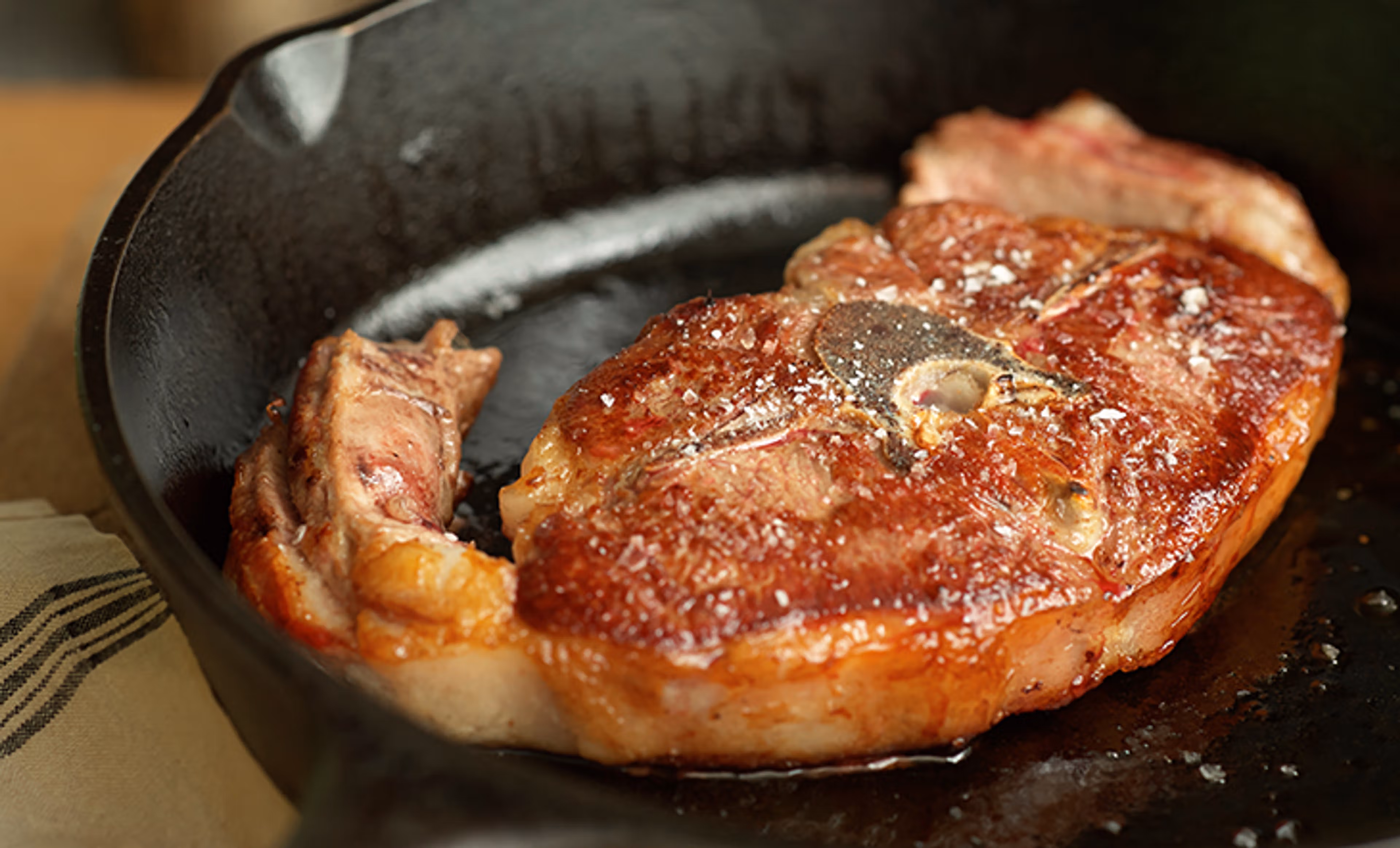 If you want to understand how Old New York actually tastes, look past the beef. Look at the massive chop being sliced by the person who’s been coming here for thirty years.